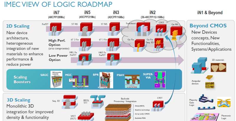 根据Imec预测,半导体工艺特征尺寸在接下来几个节点会继续以个位数纳米微缩,但在2纳米节点的40纳米闸极长度与16纳米金属间距之后,恐怕不会再往下缩小。如果这样,可能导致芯片性能无法因应最高端应用需求。那些最渴望芯片性能提升的业者,会愿意从FinFET晶体管转向更小巧的纳米片架构;而那些专注于为移动装置应用缩小芯片占位面积以及功耗的IC厂商,或许会希望能“赖”着FinFET有多久是多久。