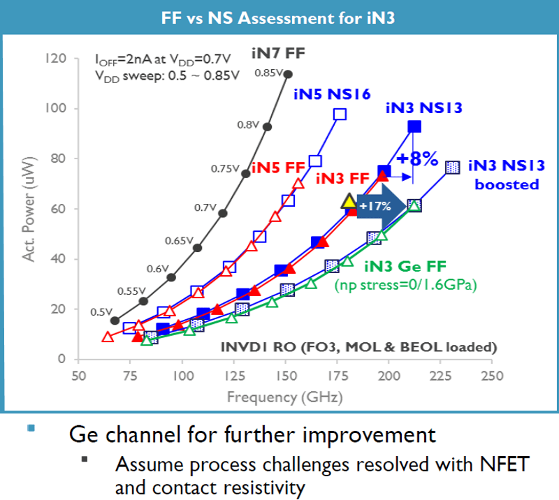 纳米片(NS)结构晶体管性能预期在未来的每一个节点都会超越FinFET (FF)。(如下图)