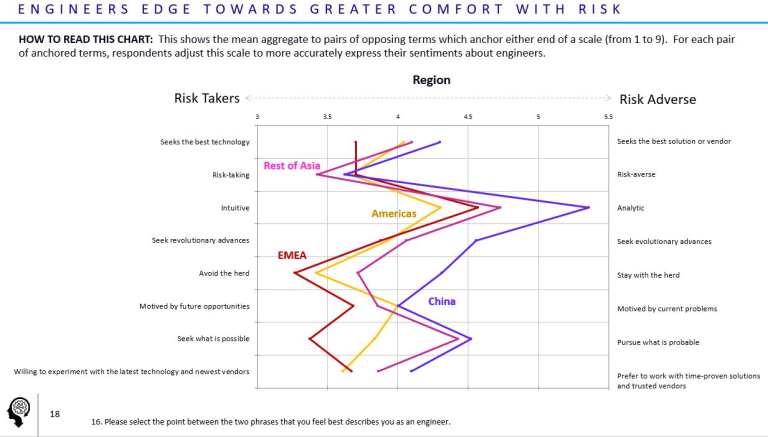 今年的调查中有一个统计数据特别值得注意的是,全球工程师都表示“打造某个全新东西”是他们的第一优先任务,而且在欧洲/非洲/中东(EMEA)地区的工程师中特别显著。